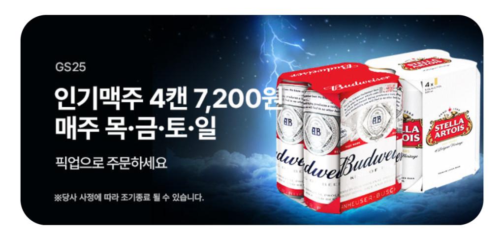 [기타] [GS25] 맥주 500ML 4캔 (스텔라, 버드와이저, 호가든 등)