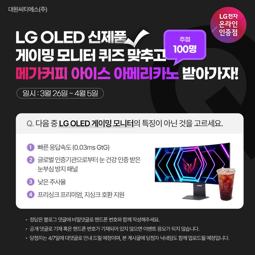 [네이버] LG 울트라기어 OLED 신제품 런칭 얼리버드 퀴즈 풀고, 아메리카노 받아가자!