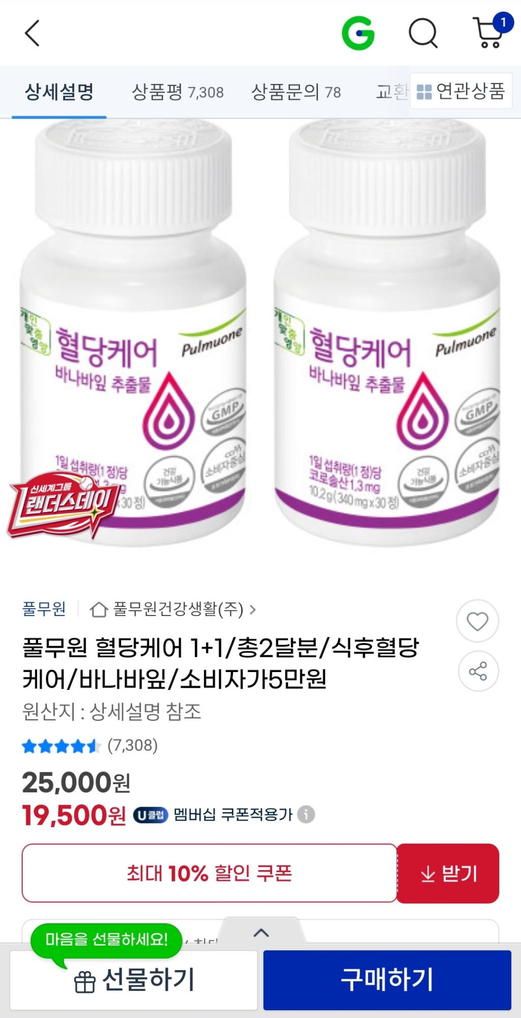 [G마켓] 풀무원 혈당케어 1+1 총 2달분(무배)