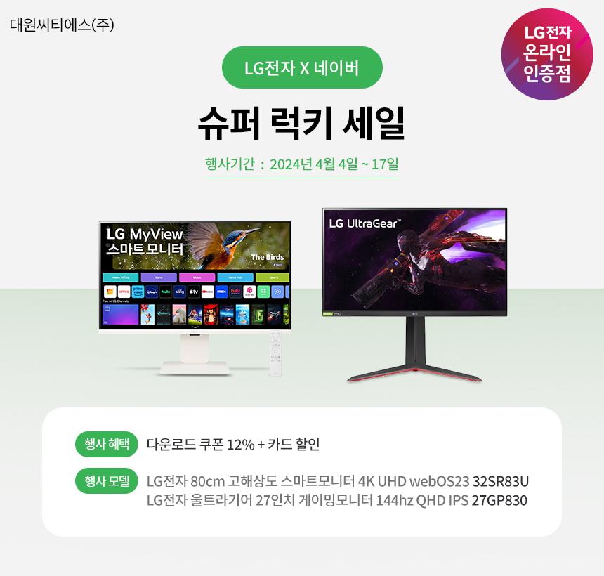 [네이버] LG 브랜드데이! 혜택이 봄꽃처럼 만개하는중! [27GP830/32SR83U]