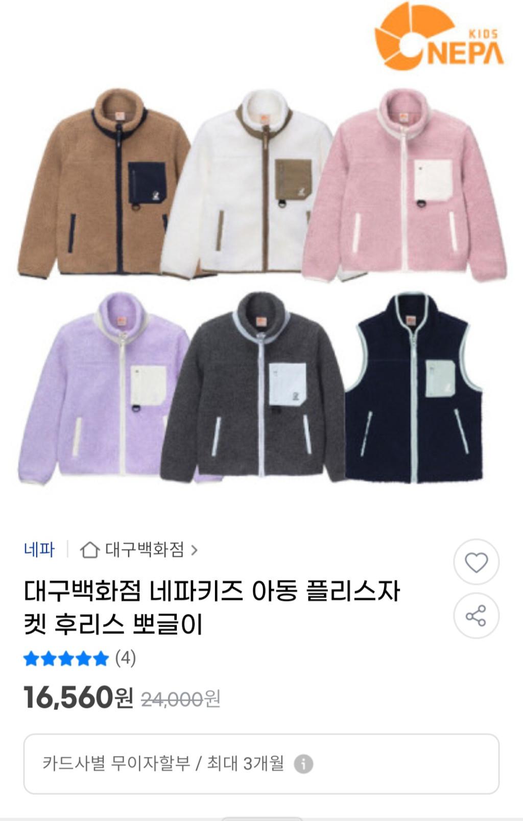 [G마켓] 네파키즈 아동 플리스자켓 후리스 뽀글이