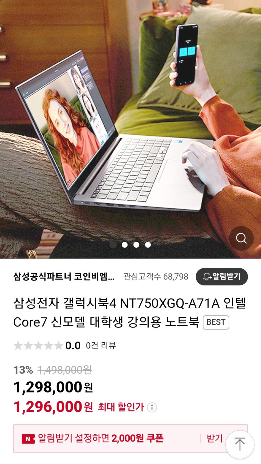 [네이버] 삼성전자 갤럭시북4 NT750XGQ-A71A 인텔 Core7+마우스