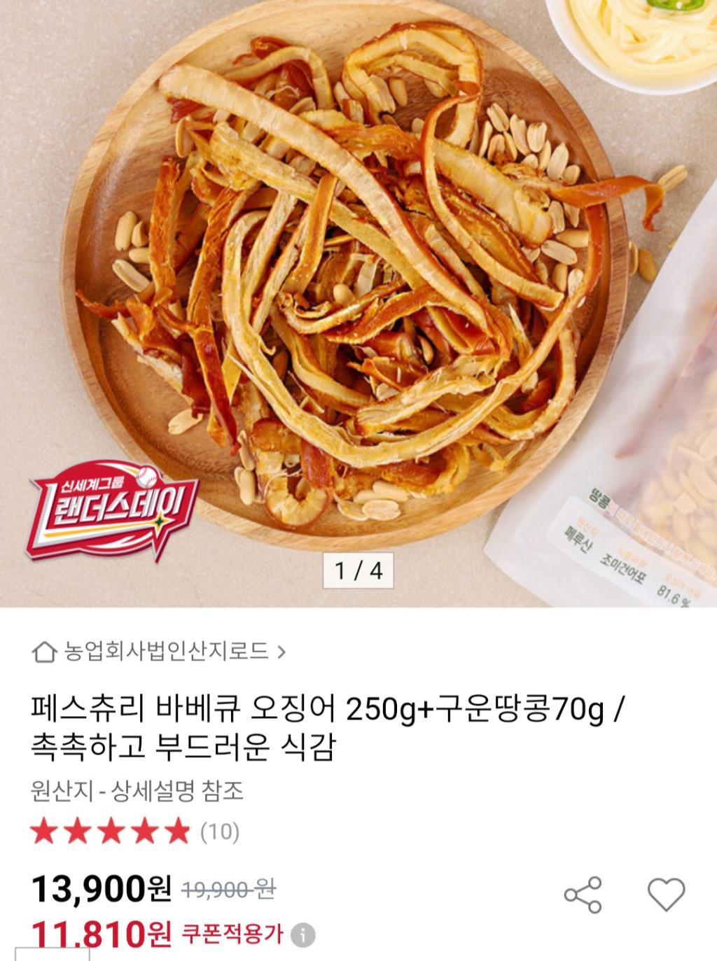 [옥션] 페스츄리 바베큐 오징어 250g + 구운땅콩 70g (11,810원 / 무료배송)