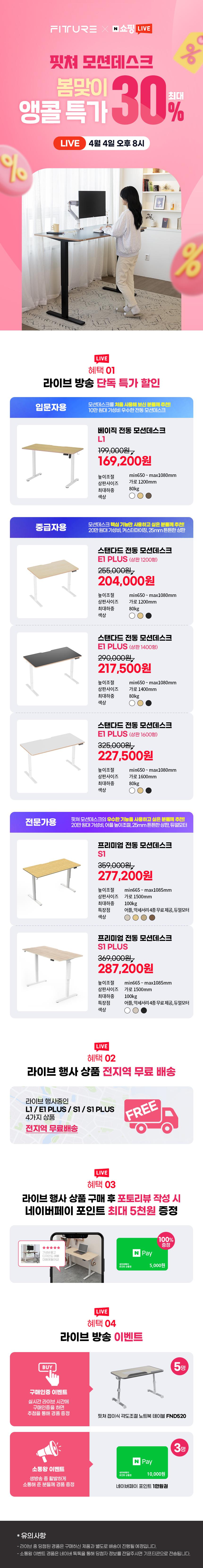 [네이버] [네이버] 핏쳐 모션데스크 L1 외 3개 제품 4월4일 저녁8시 네이버쇼핑라이브 진행!…
