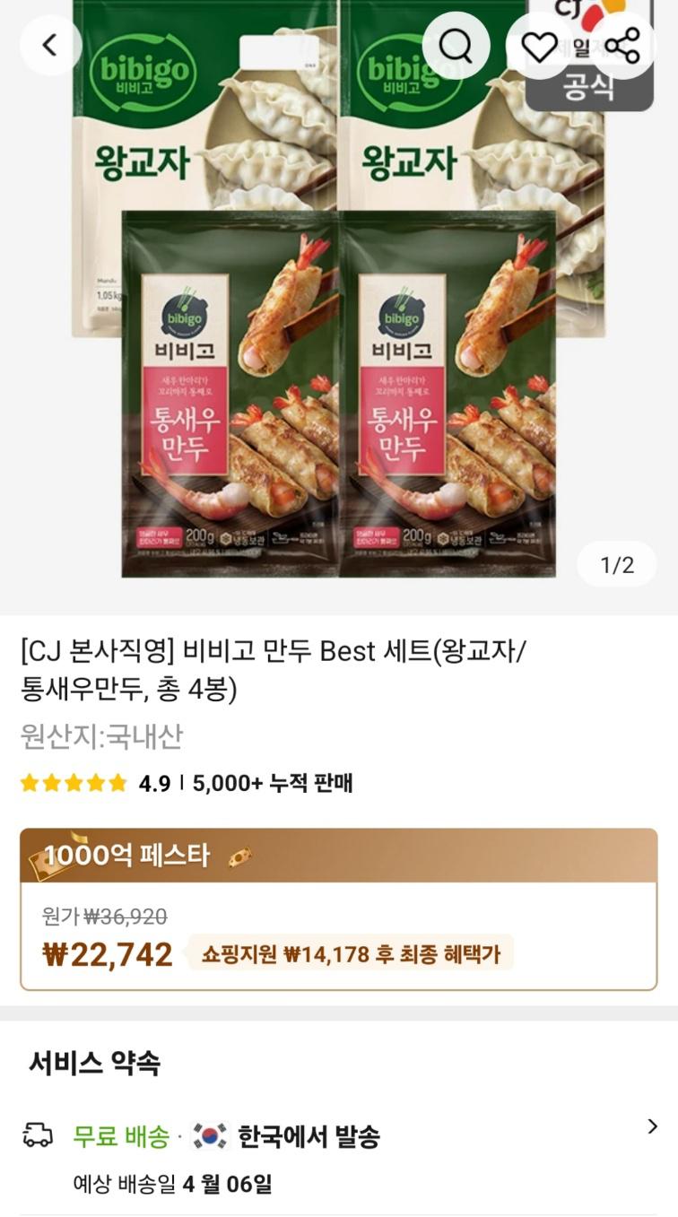 [알리] 비비고 왕교자 2봉 + 통새우만두 2봉 (무배)