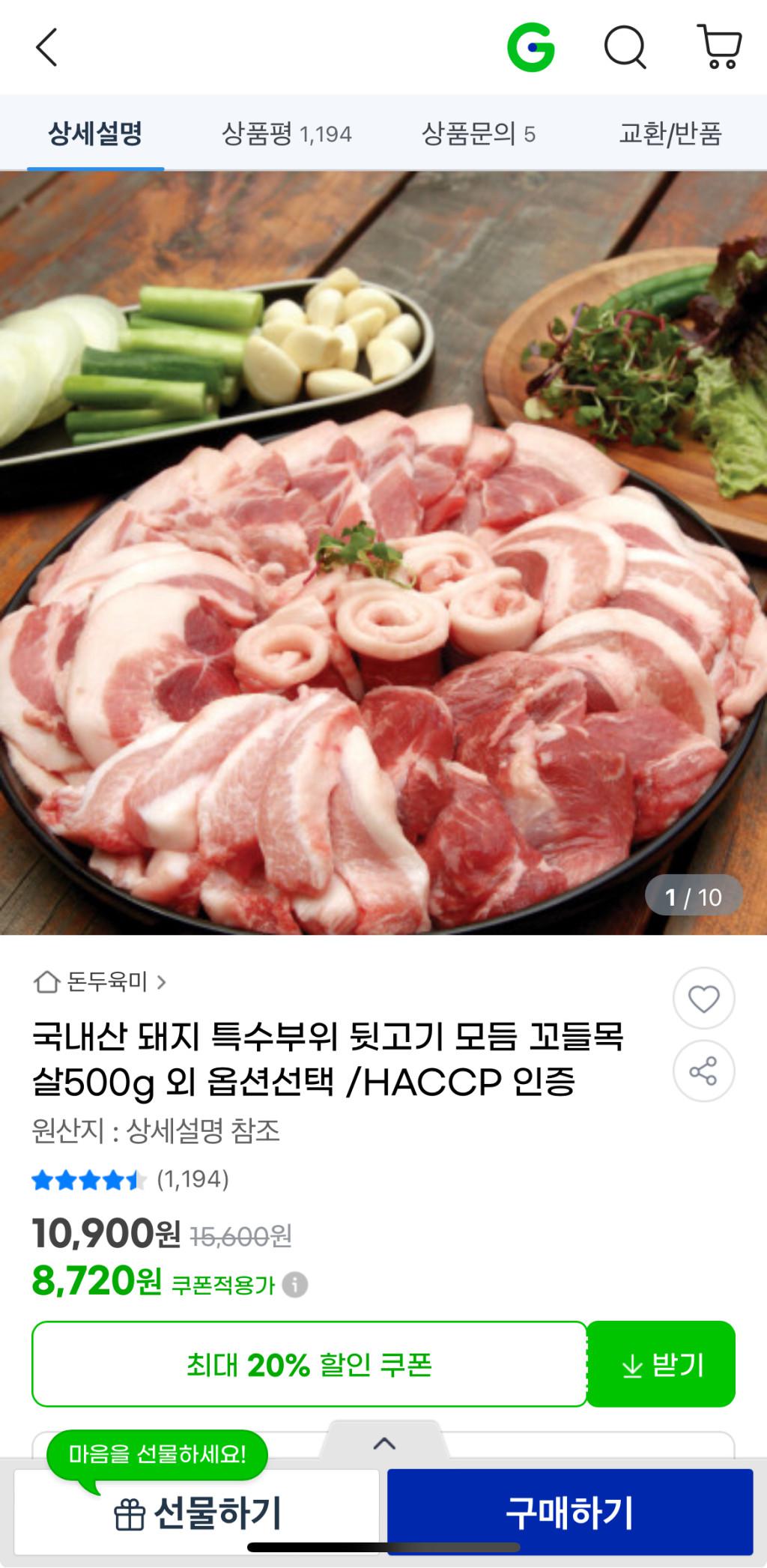 [G마켓] 국내산 돼지 특수부위 뒷고기 500g