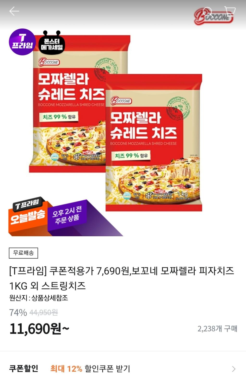[티몬] 보꼬네 모짜렐라 피자치즈 1kg 유통기한 6/24