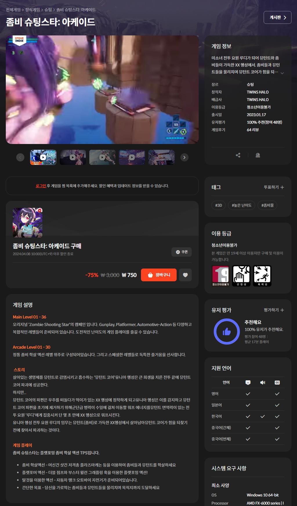 [기타] 스토브 좀비 슈팅스타: 아케이드