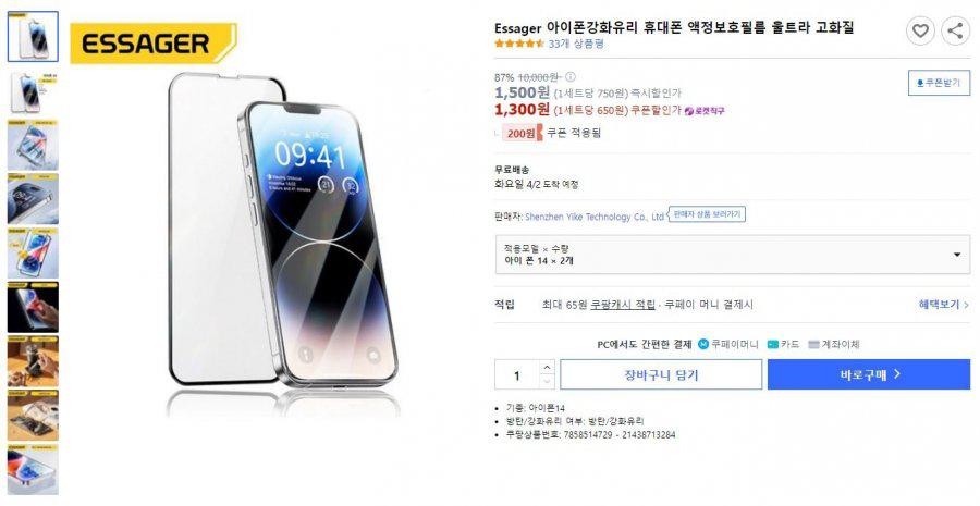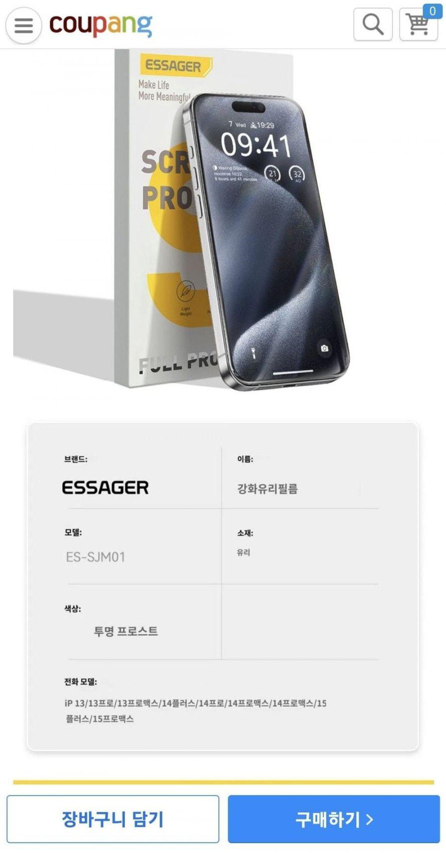 [쿠팡] [쿠팡] Essager 아이폰 강화유리 휴대폰 액정보호필름 (1,500원/무료)