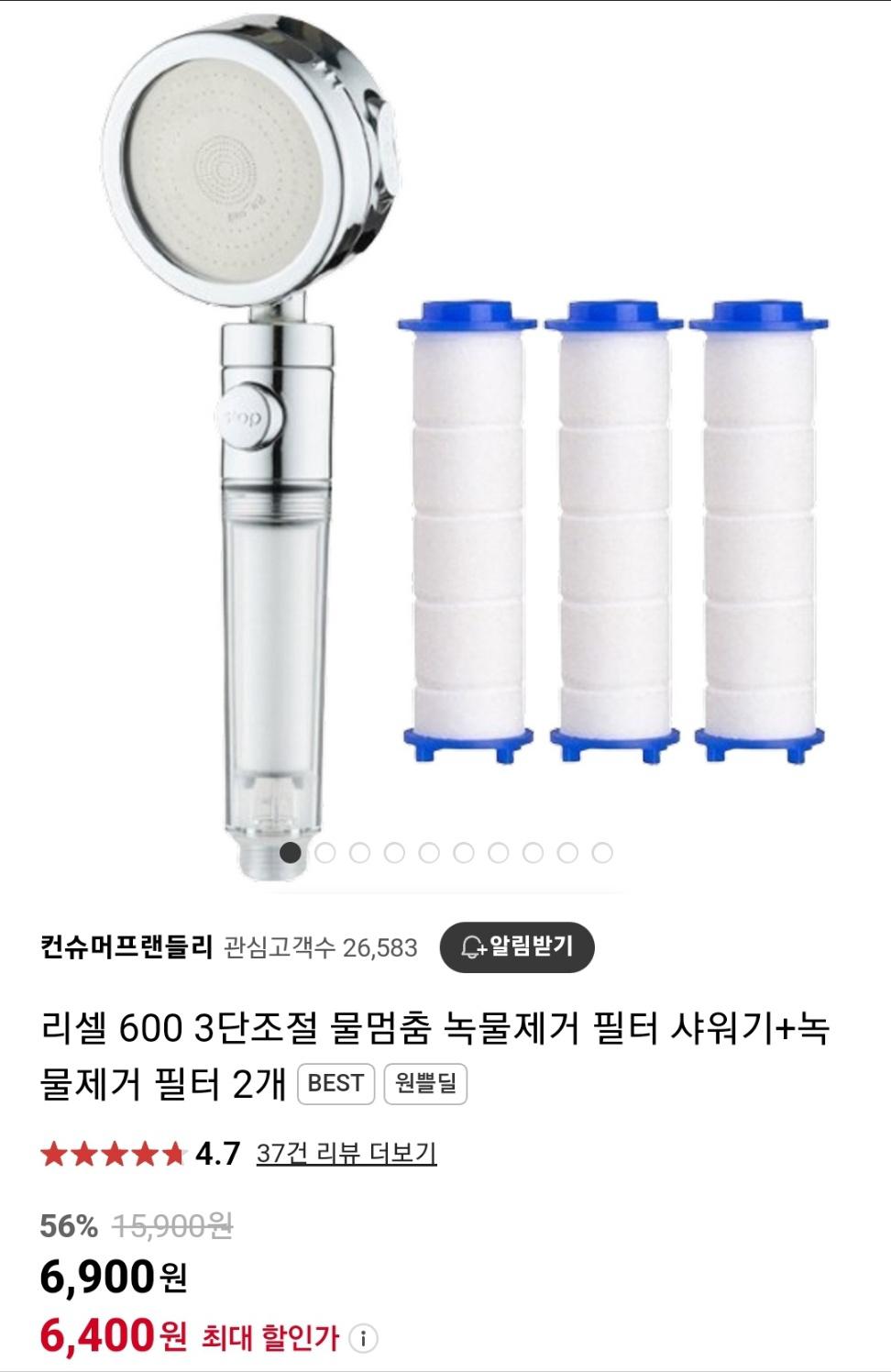 [네이버] 리셀 600 3단조절 물멈춤 녹물제거 필터 샤워기+녹물제거 필터2개