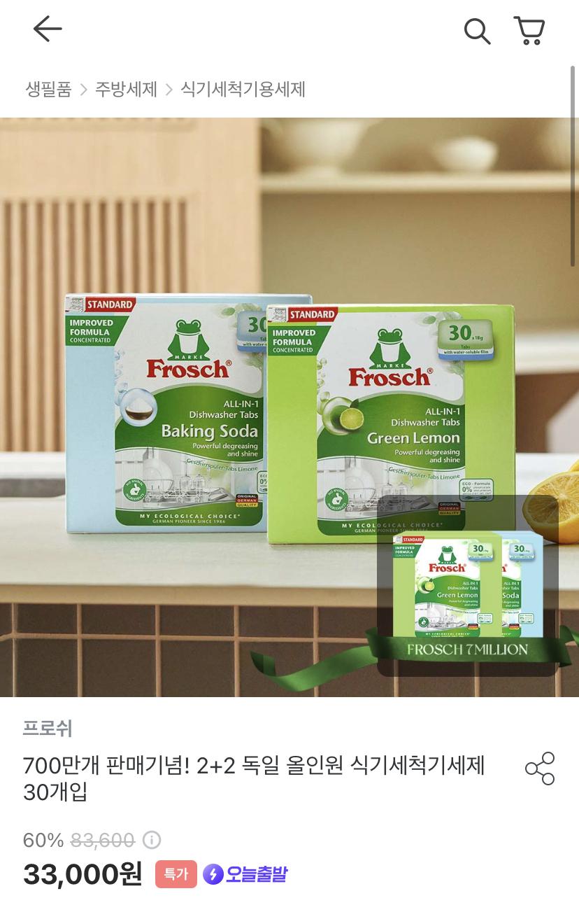 [오늘의집] 프로쉬 식기세척기 올인원 세제 120개