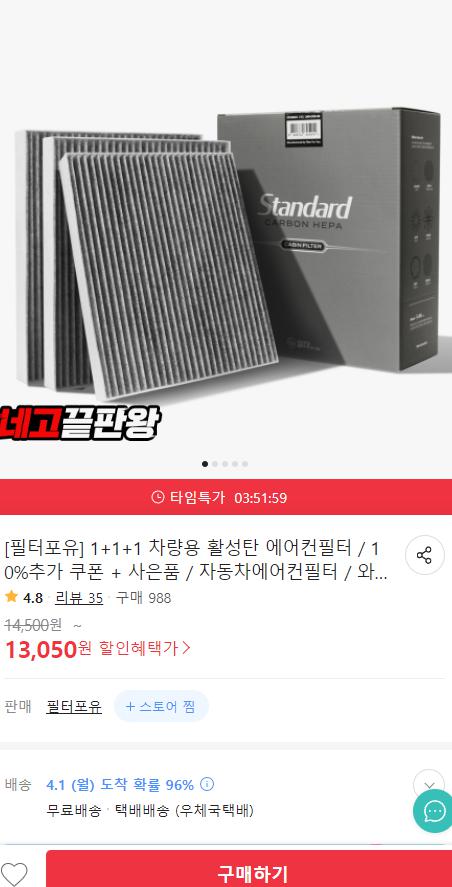 [위메프] 차량용 활성탄 에어컨필터 3개