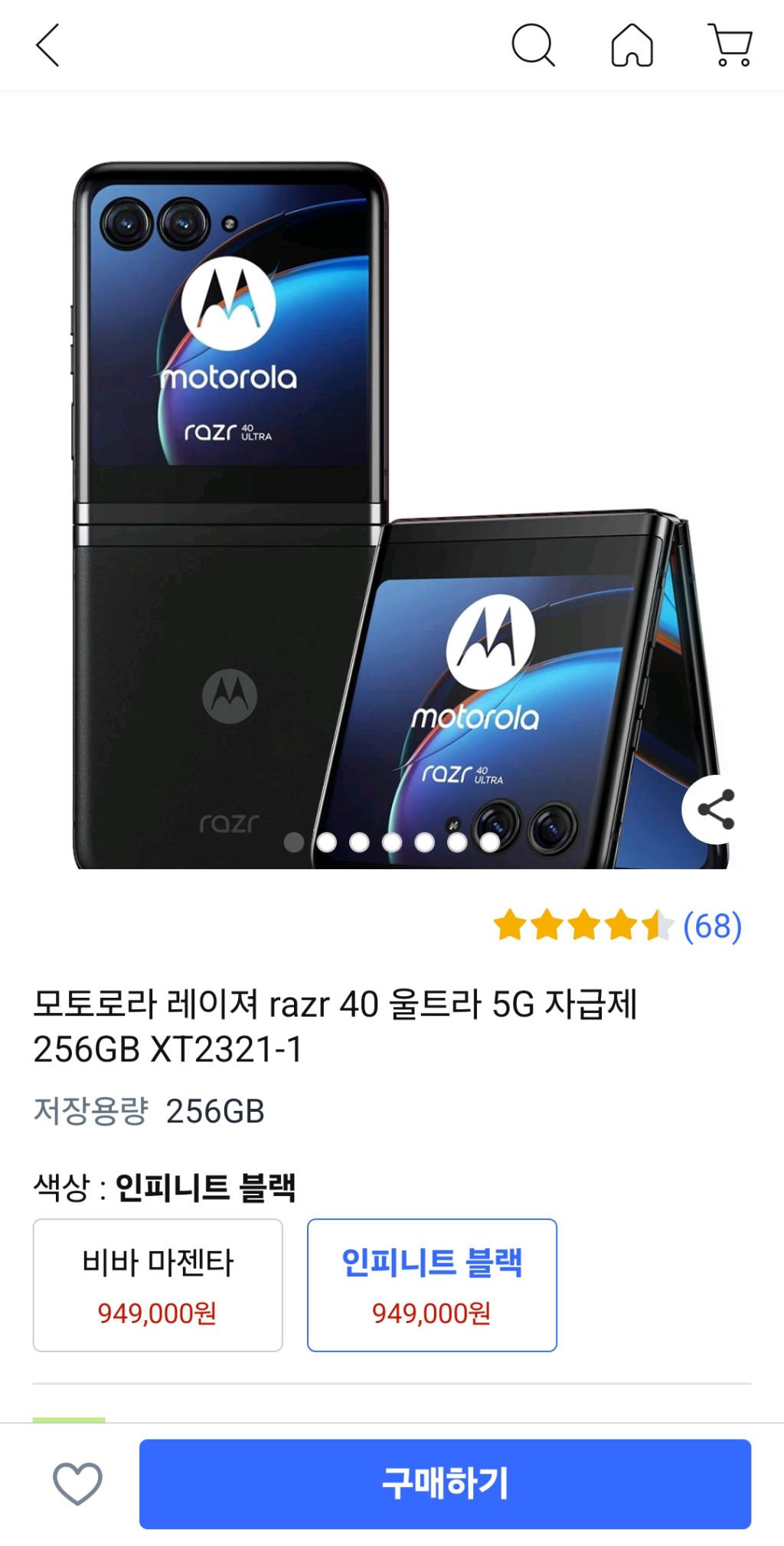 [쿠팡] 모토로라 레이져 razr40 울트라 256g 자급제 (무배)