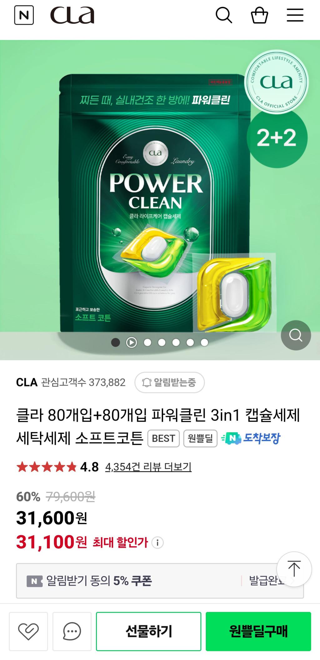 [네이버] 클라 3in1 실내건조 캡슐세제 160개입 (무배)