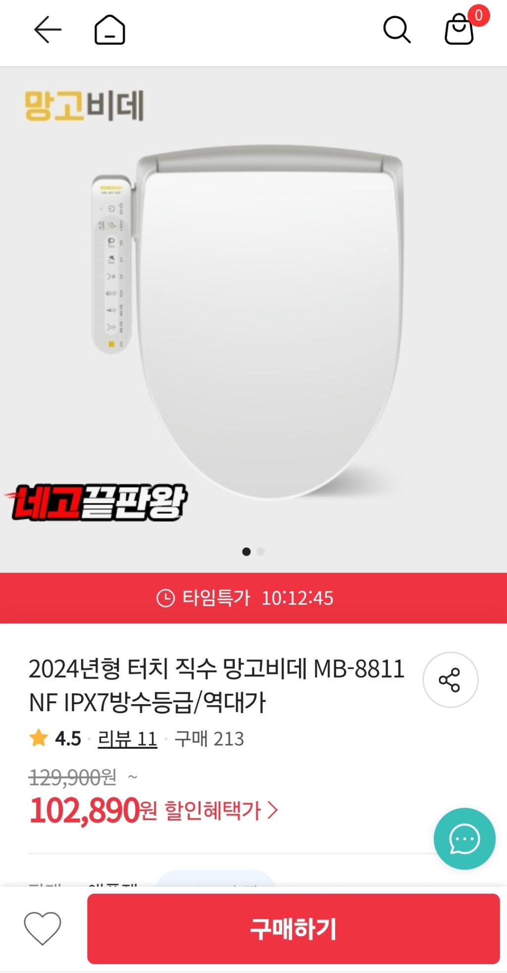 [위메프] 2024년형 터치 직수 망고비데 MB-8811NF IPX7방수등급