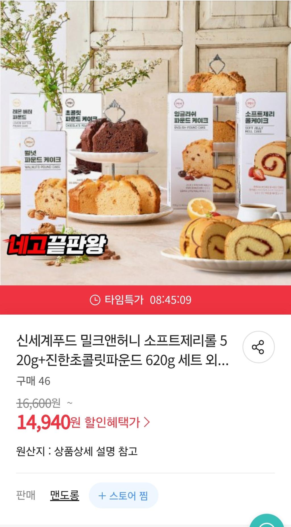 [위메프] 신세계푸드 밀크앤허니 소프트제리롤 520g+진한초콜릿파운드 620g 세트