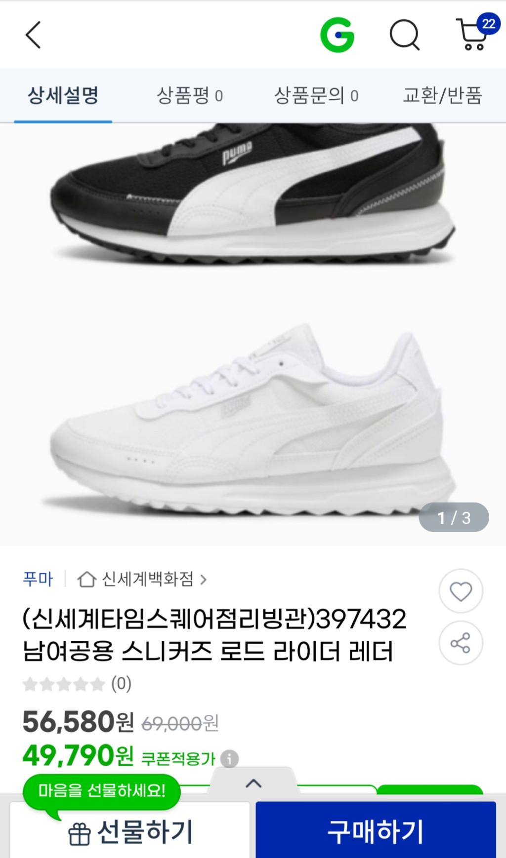 [G마켓] 푸마 스니커즈 로드 라이더 레더 49,790원(무료)