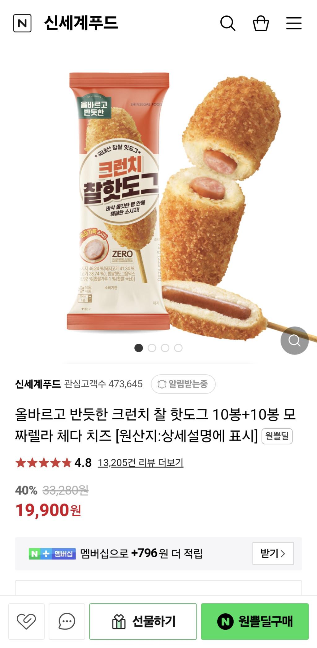 [네이버] 올반 크런치 찰 핫도그 10봉+10봉 (무배)