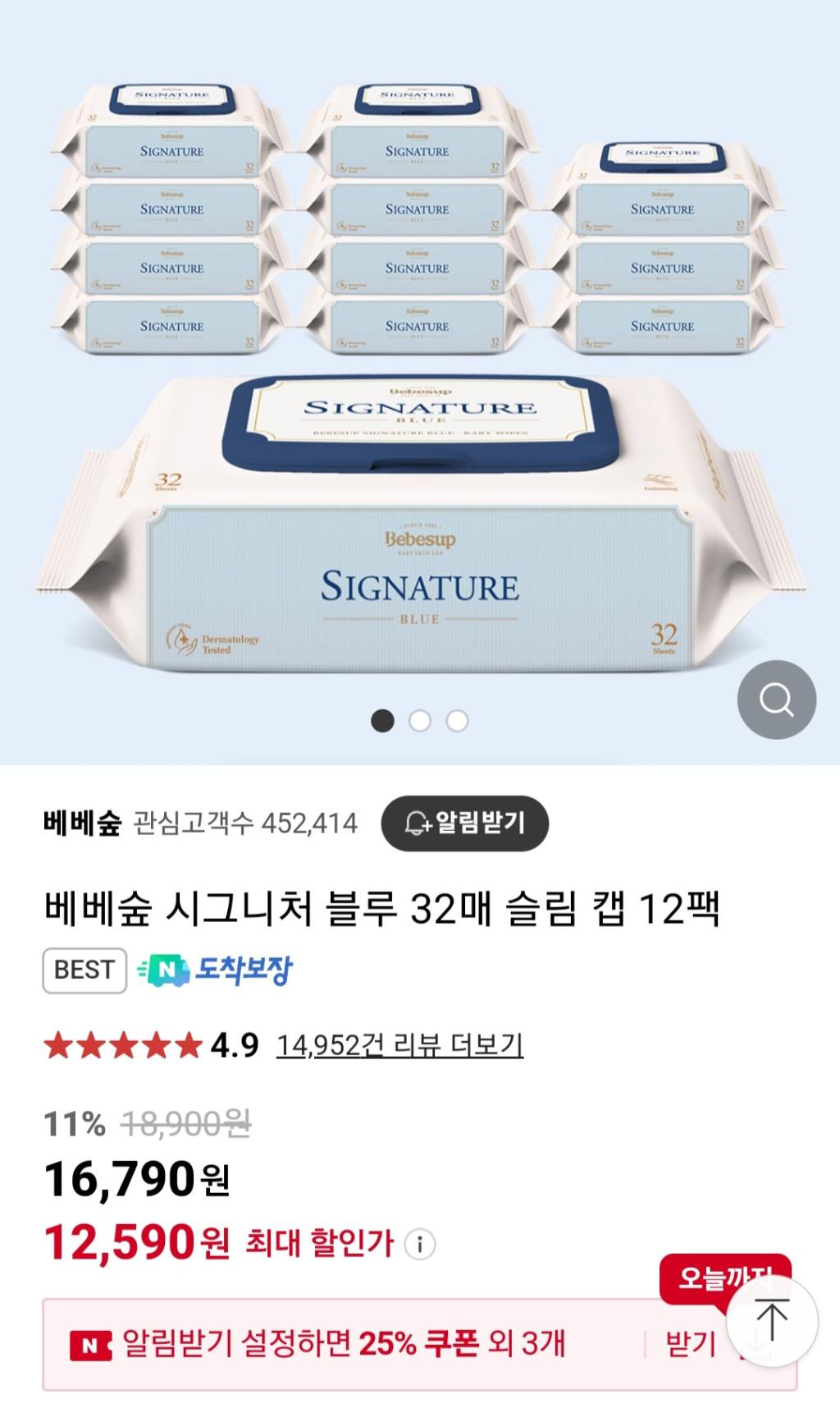[네이버] 베베숲 시그니처 블루 32매 슬림 캡 12팩 (무배)