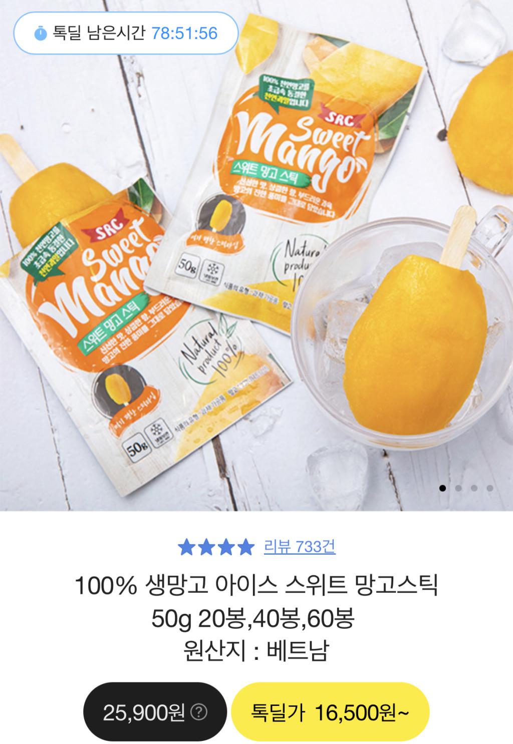[카카오톡딜] 생망고 아이스 스위트 망고스틱 50g x 20봉