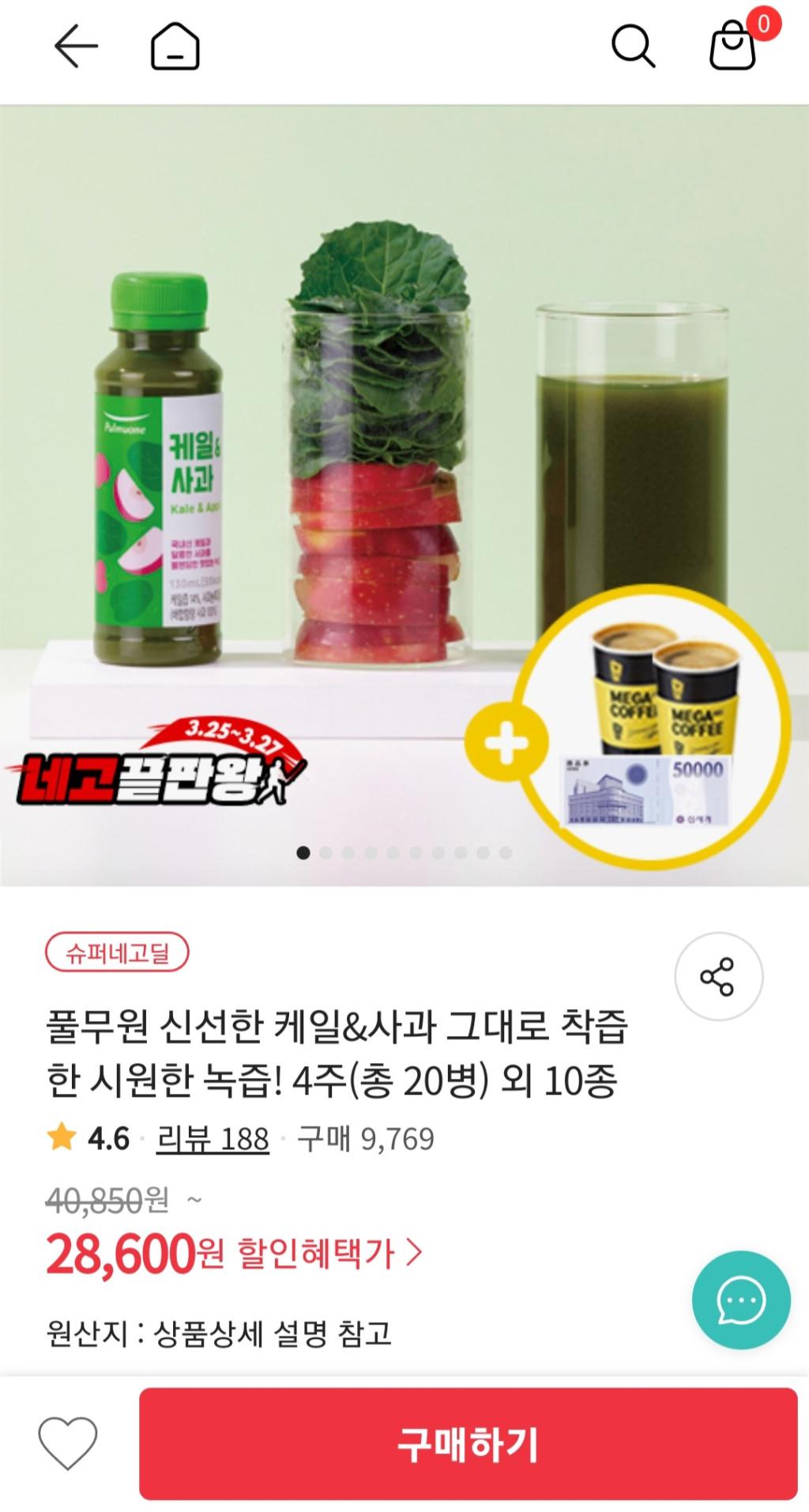[위메프] 풀무원 케일사과 신선녹즙 4주 20병 (무배)