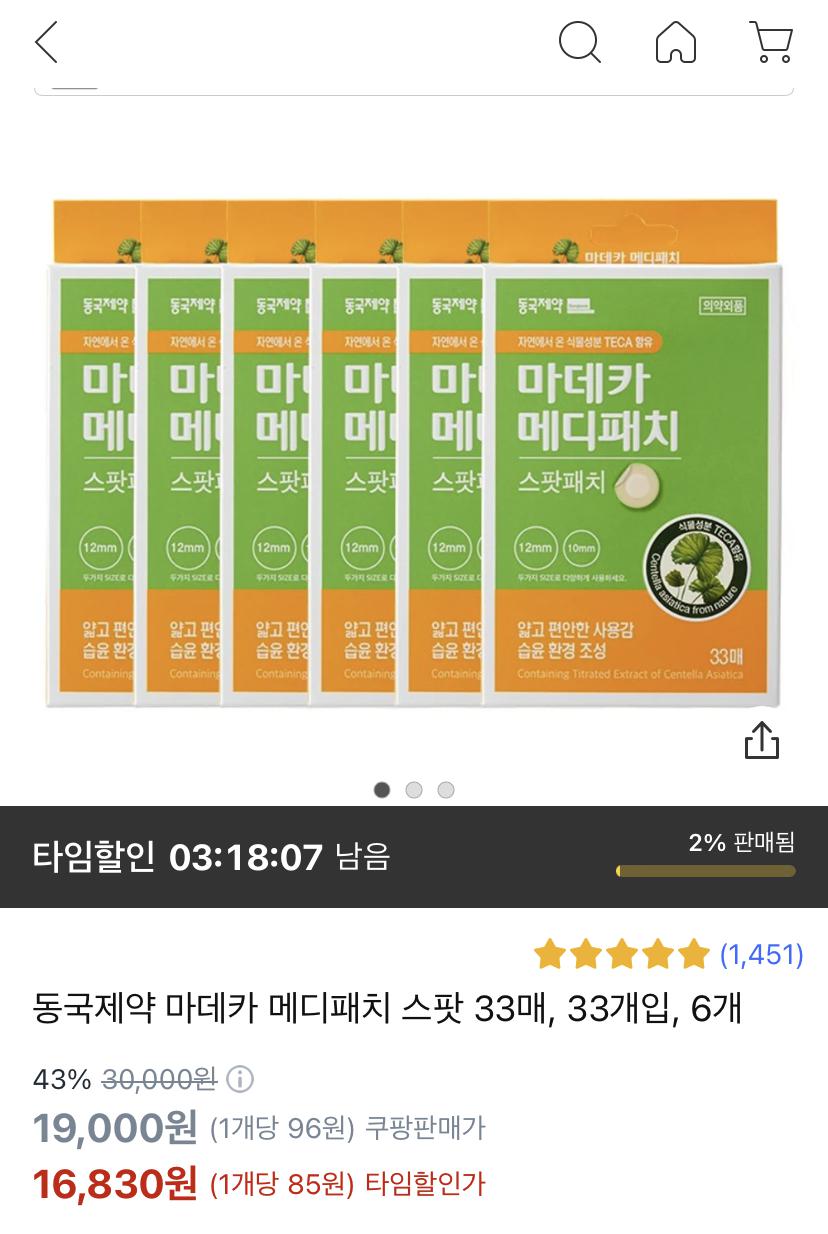 [쿠팡] 동국제약 마데카 메디패치 33매 x 6개