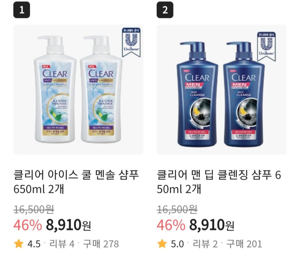 [위메프] 클리어 샴푸 650ml 2개 (무배)