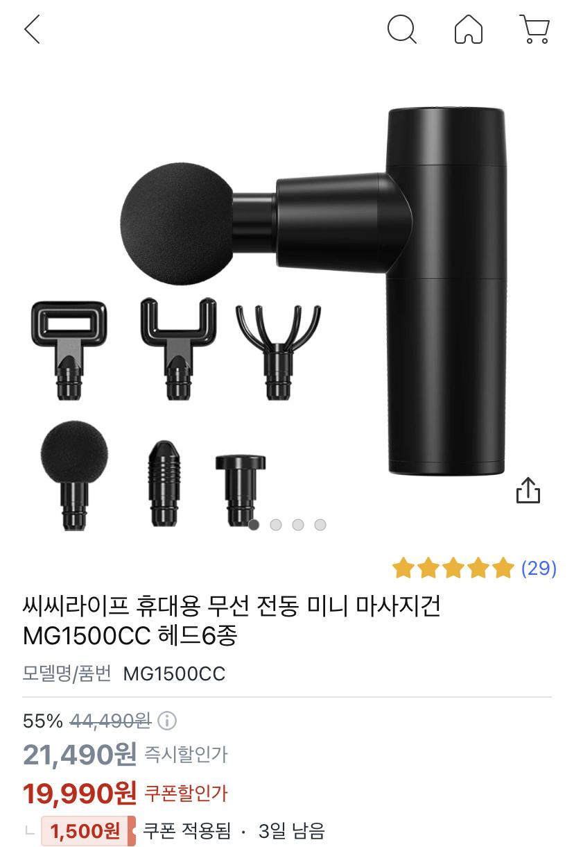 [쿠팡] 휴대용 무선 미니 마사지건 MG15500CC + 헤드6개