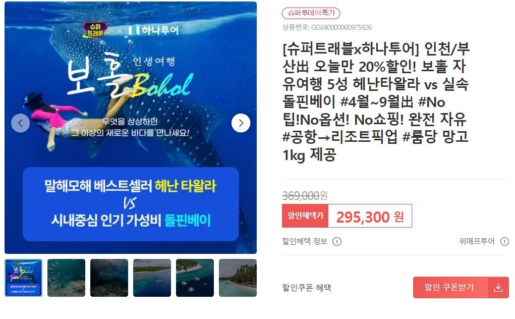 [위메프] 보홀 자유여행 헤난타왈라/돌핀베이 (무배)