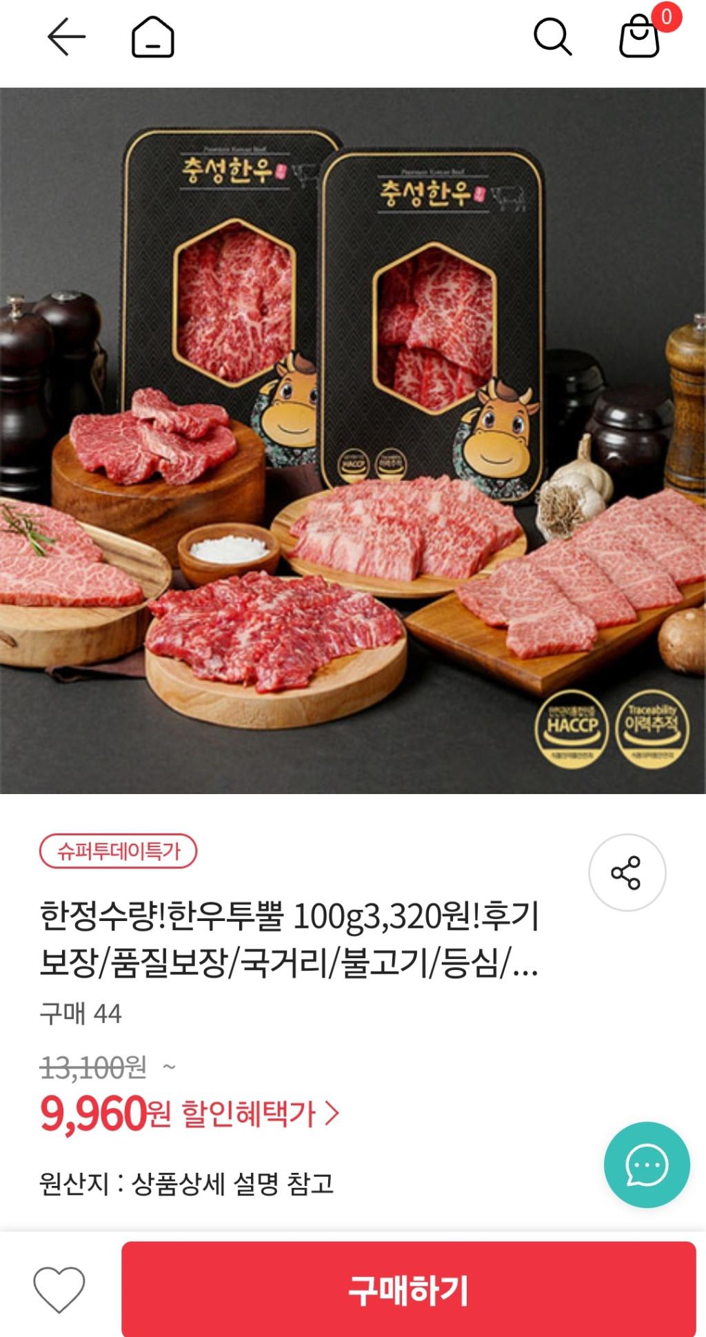 [위메프] 충성한우 1++등급 국내산 국거리 300g