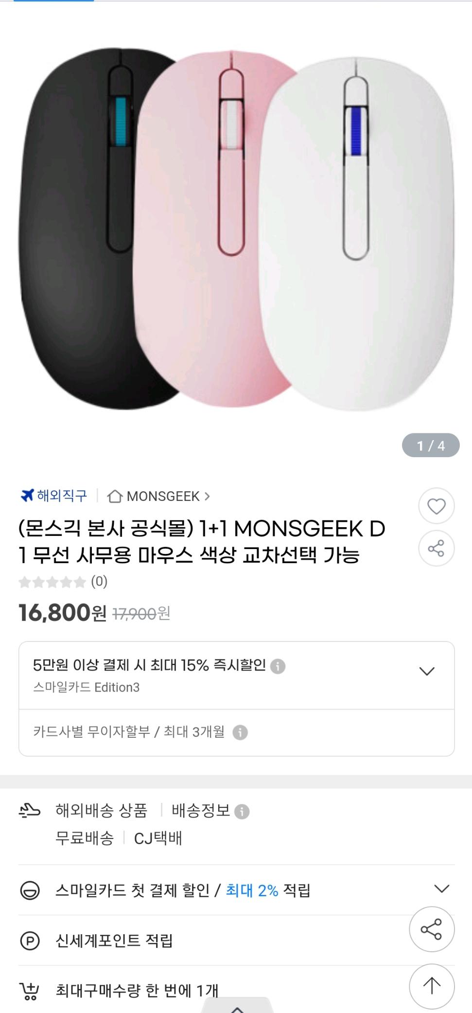 [G마켓] 몬스긱 무선 경량 마우스 1+1 (무료배송)