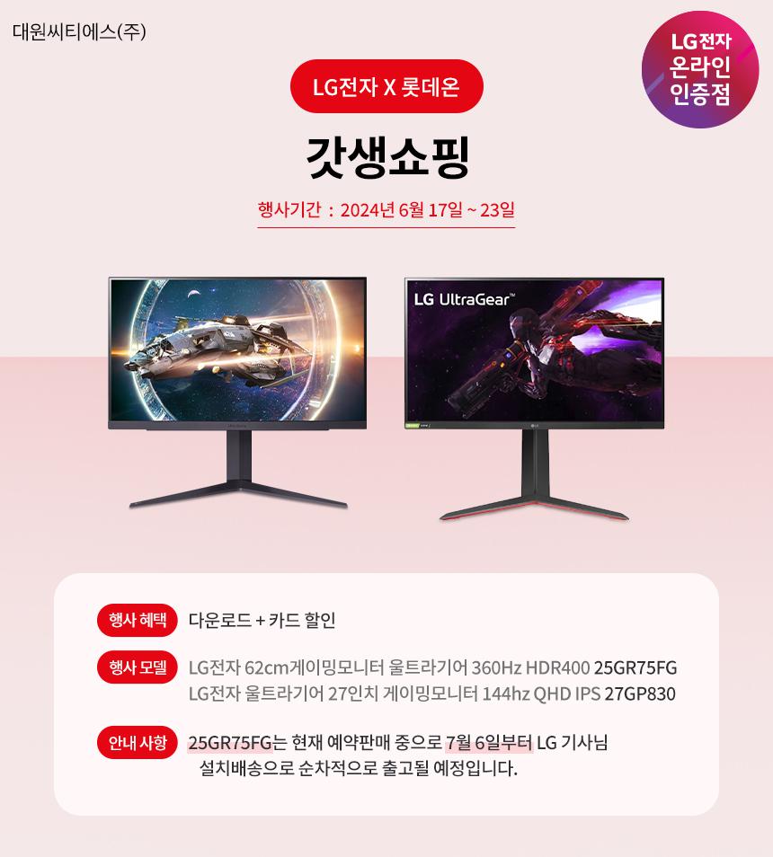 [롯데온] 온세일 울트라기어 25GR75FG/27GP830 프로모션 시작!