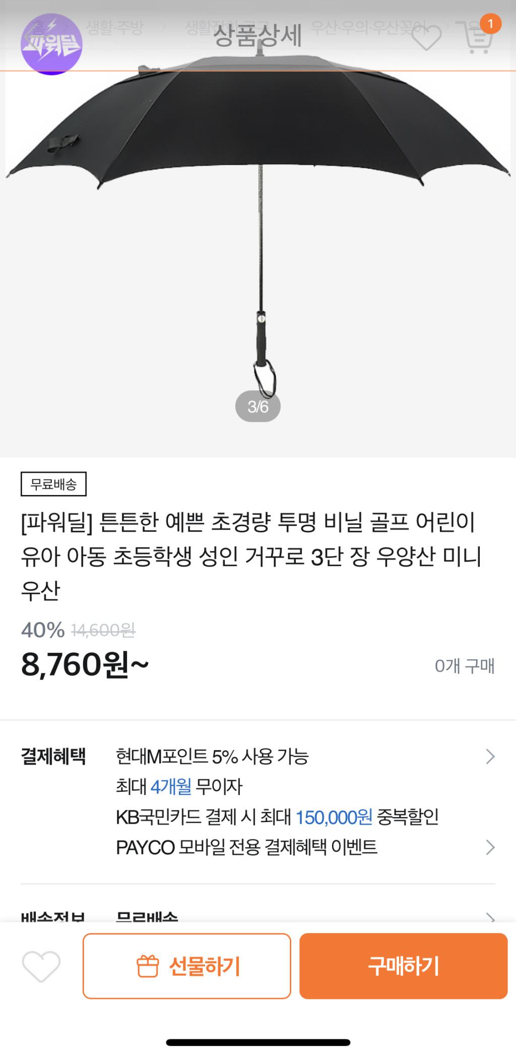 [티몬] 자외선 차단 3단 자동우산 외~ 8760원 무배