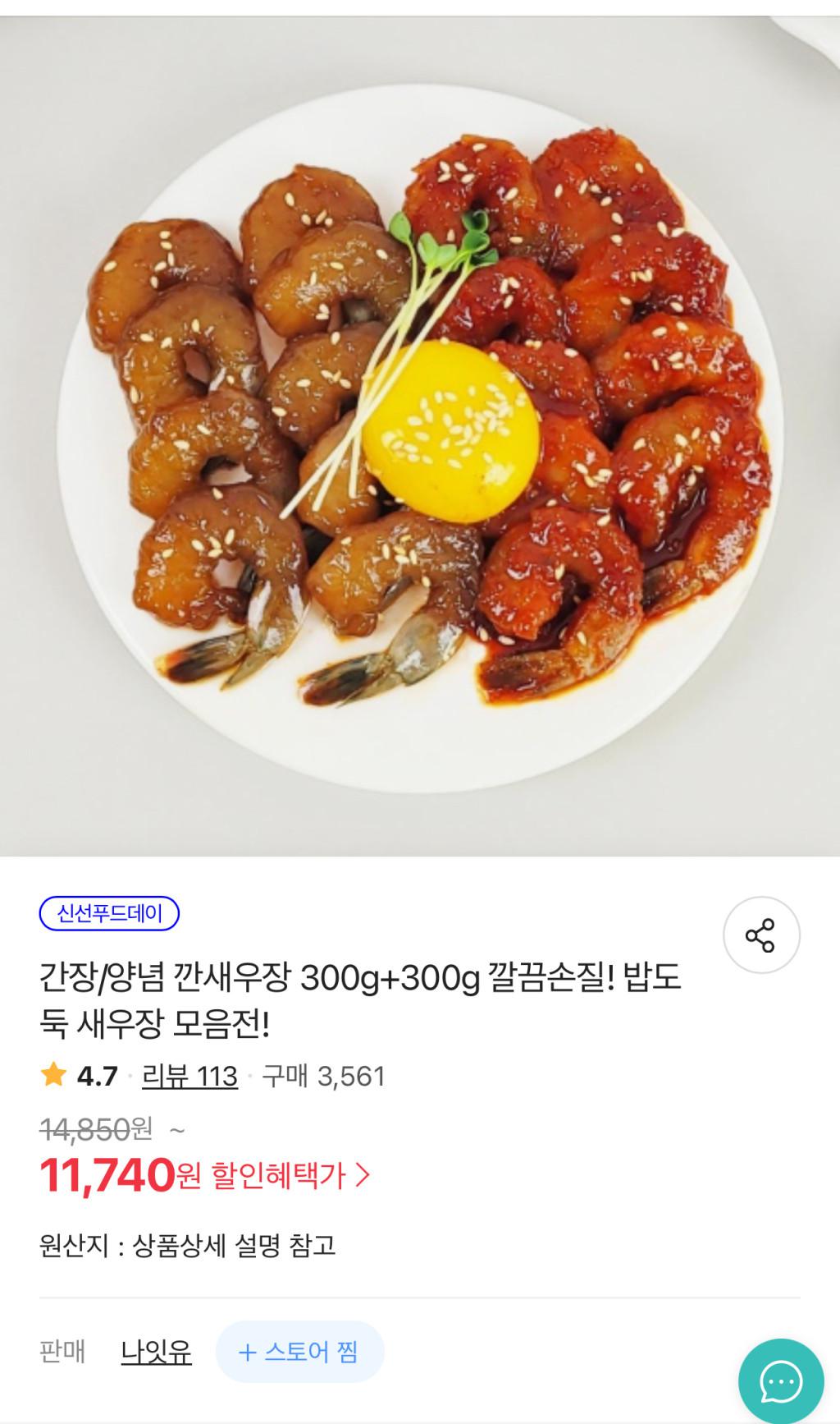 [위메프] 밥도둑 깐 새우장 500+500g 간장 양념 모음