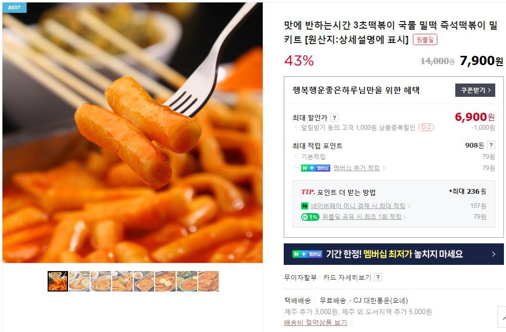 [네이버] 맛에 반하는시간 3초떡볶이 국물 밀떡 즉석떡볶이 밀키트