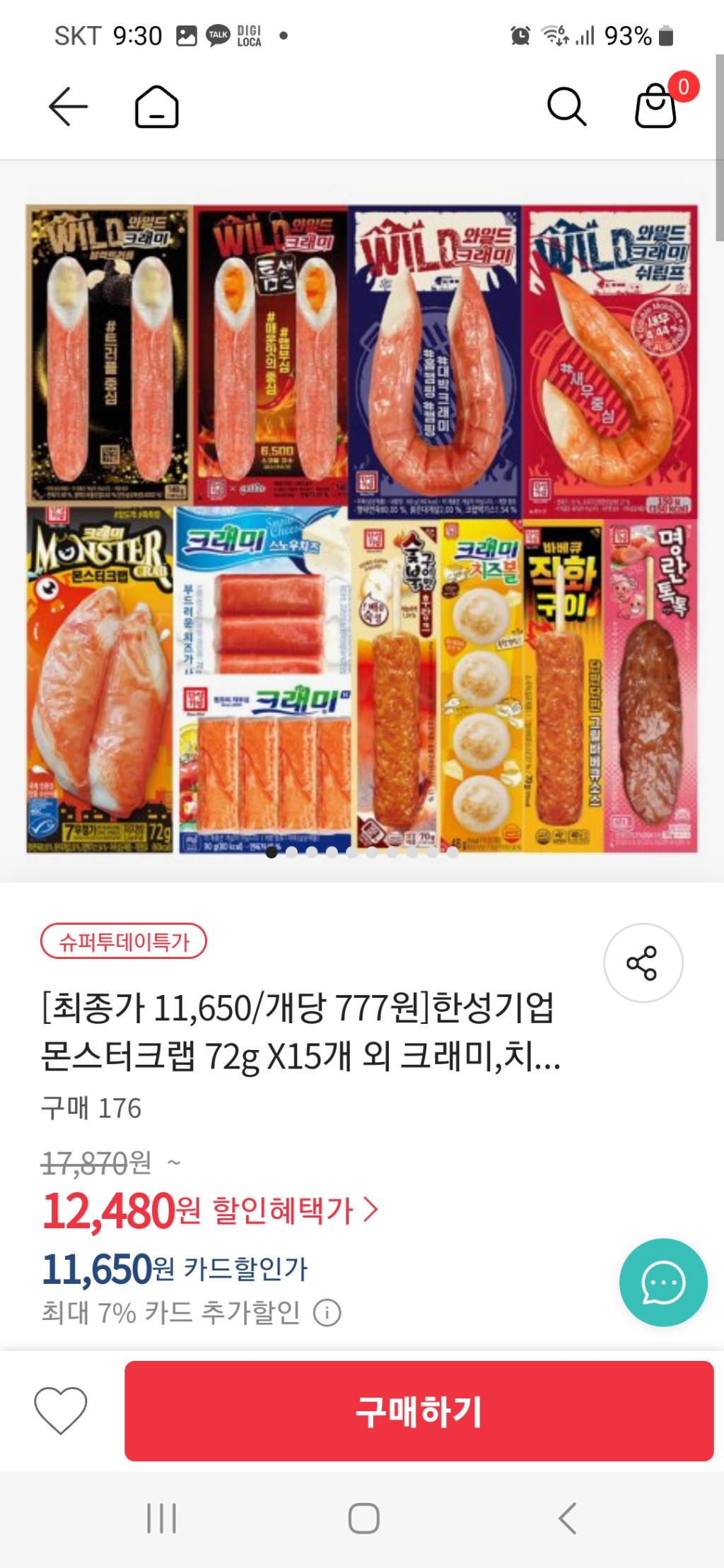 [위메프] [위메프] 한성 몬스터크랩 72g×15개 (11,650원/무배)