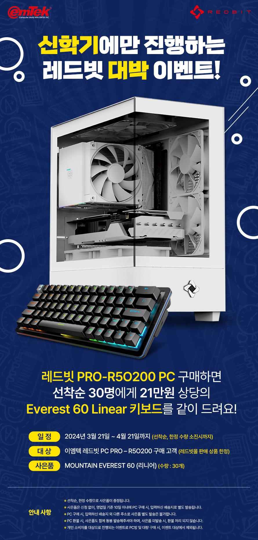 [기타] [레드빗몰] 이엠텍, 레드빗 브랜드PC PRO – R5O200 한정수량 구매고객 대상,…