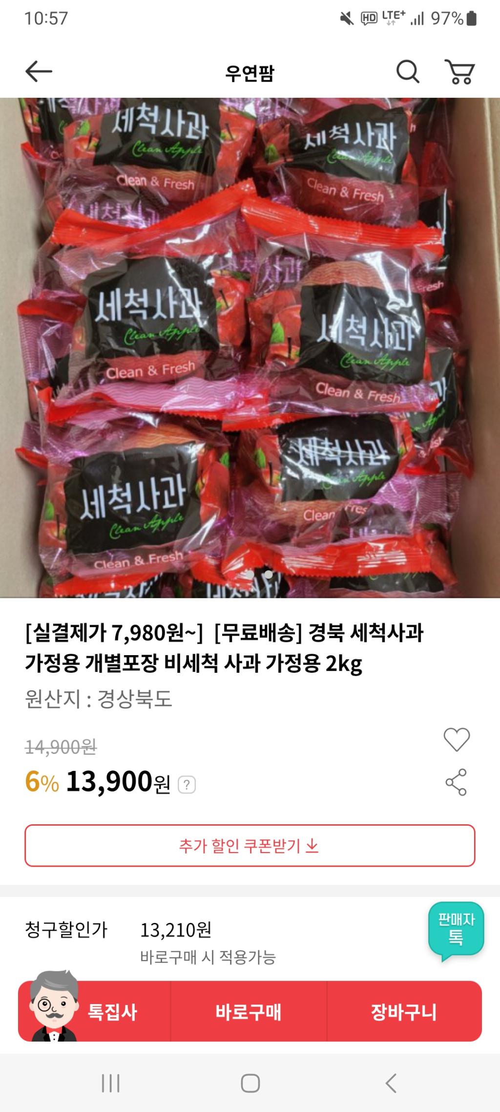 [인터파크] 경북 세척사과 가정용 2kg 12과 내외
