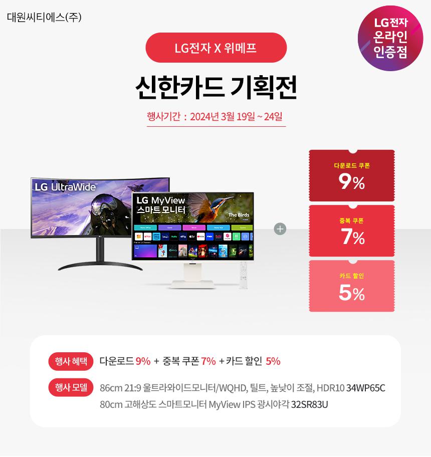 [위메프] 추가할인 진행 중! 울트라와이드 34WP65C, MyView 32SR83U