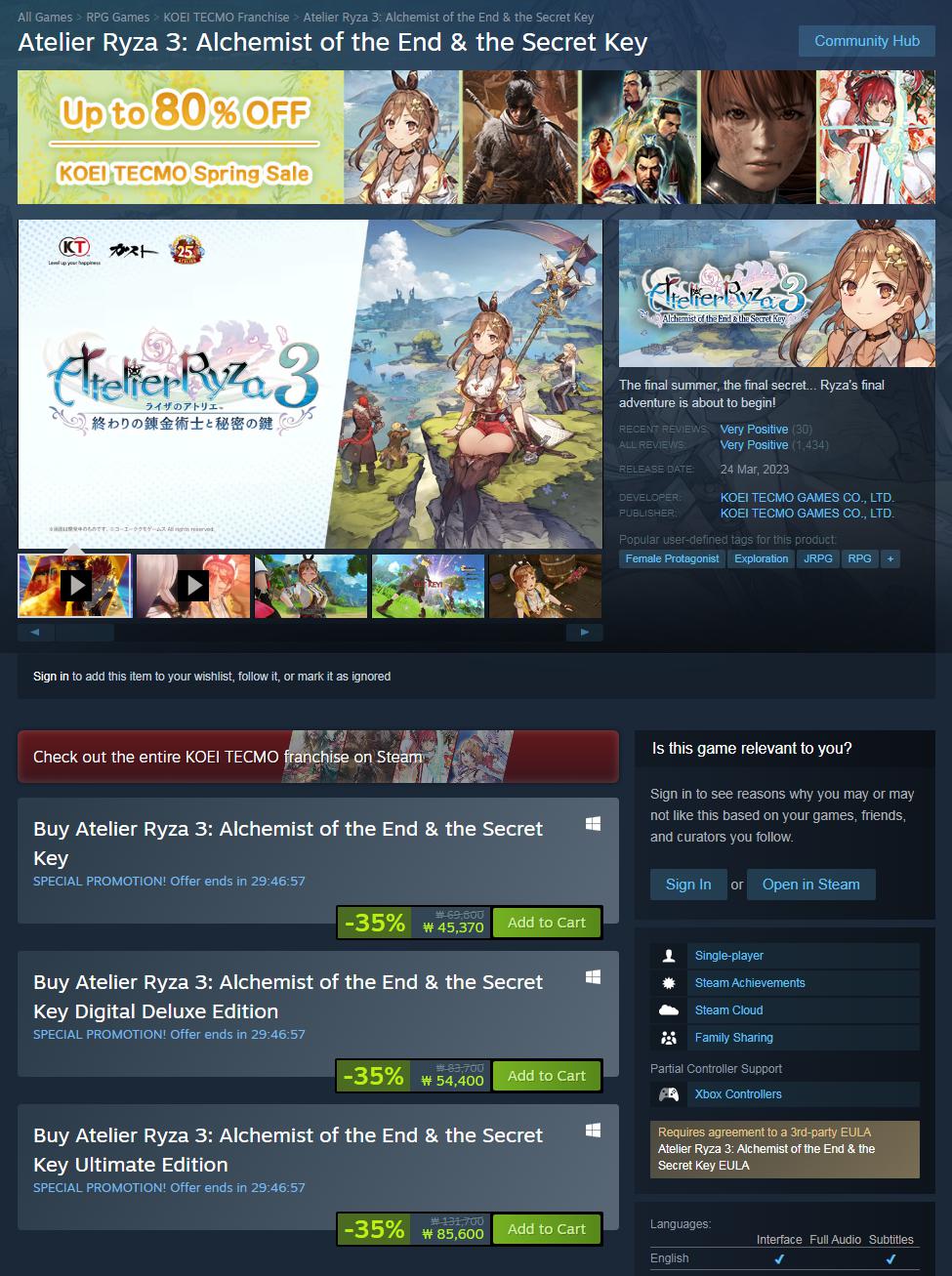[기타] 스팀 라이자의 아틀리에3 ~종극의 연금술사와 비밀의 열쇠~