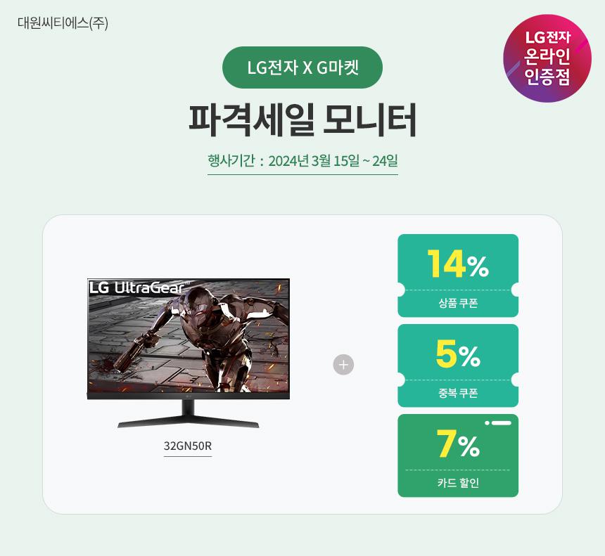 [G마켓] 가성비 게이밍모니터 32GN50R (파)격세일 (모)니터 행사 진행 중
