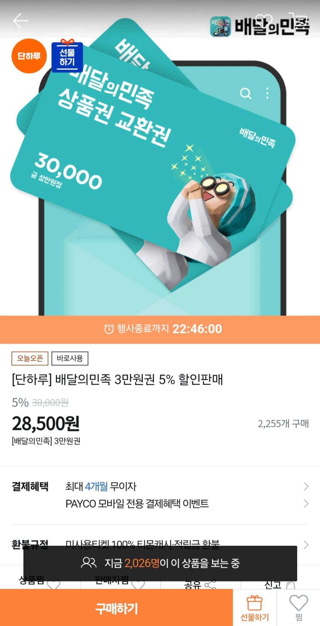 [티몬] 배달의민족 3만원권 5%할인