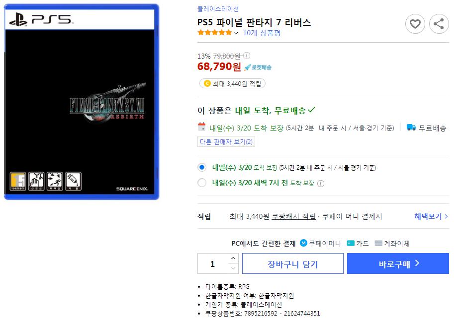[쿠팡] 플레이스테이션 PS5 파이널 판타지 7 리버스