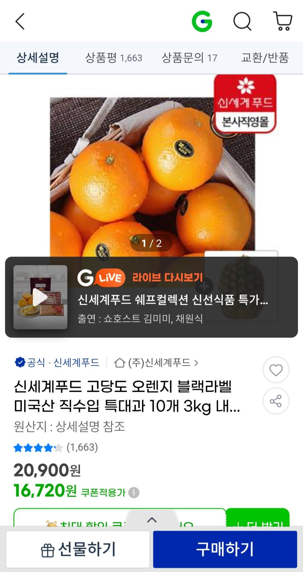 [G마켓] 고당도 오렌지 블랙라벨 특대과 10개 3kg + 파인애플 1개 (무배)