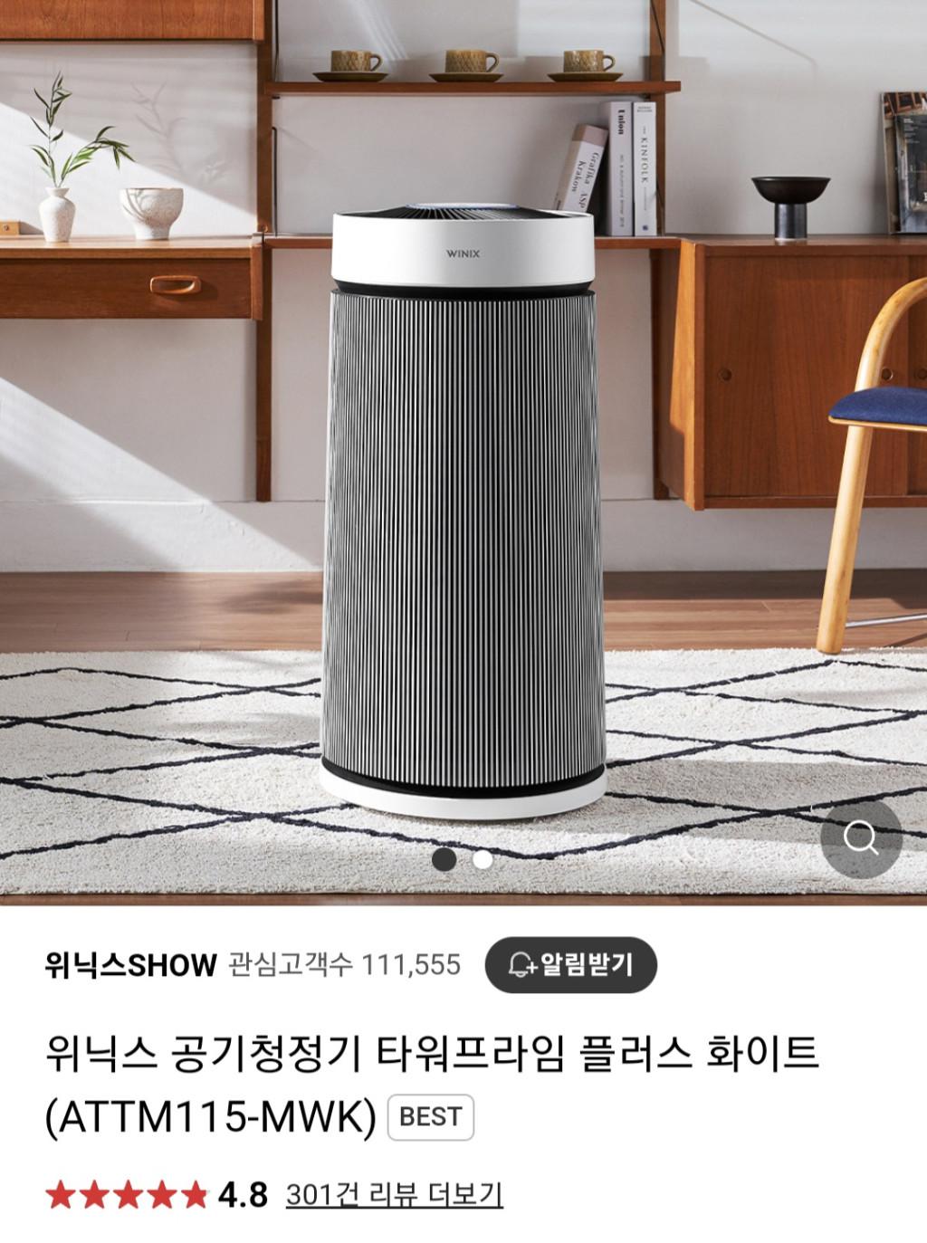 [네이버] 위닉스 공기청정기 타워프라임 플러스 화이트 (466,860원 / 무배)