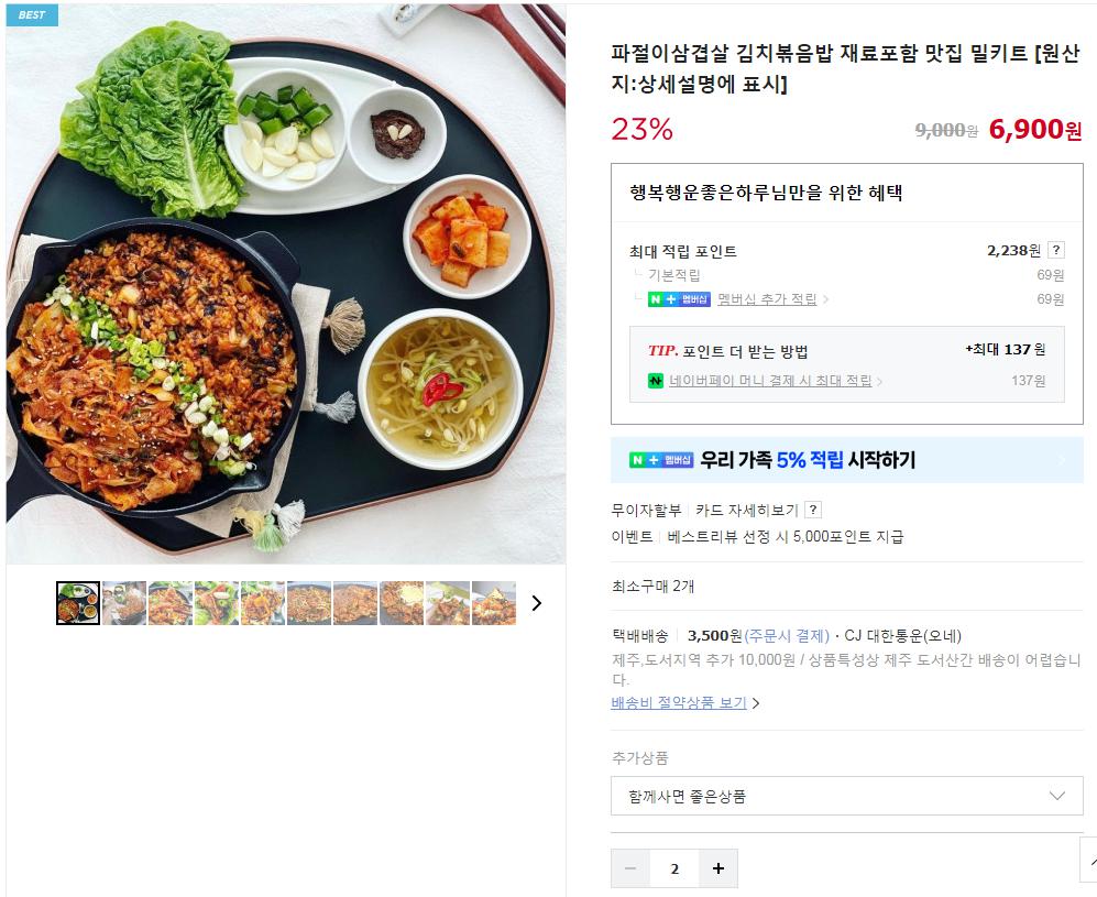 [네이버] 파절이삼겹살 김치볶음밥 재료포함 맛집 밀키트