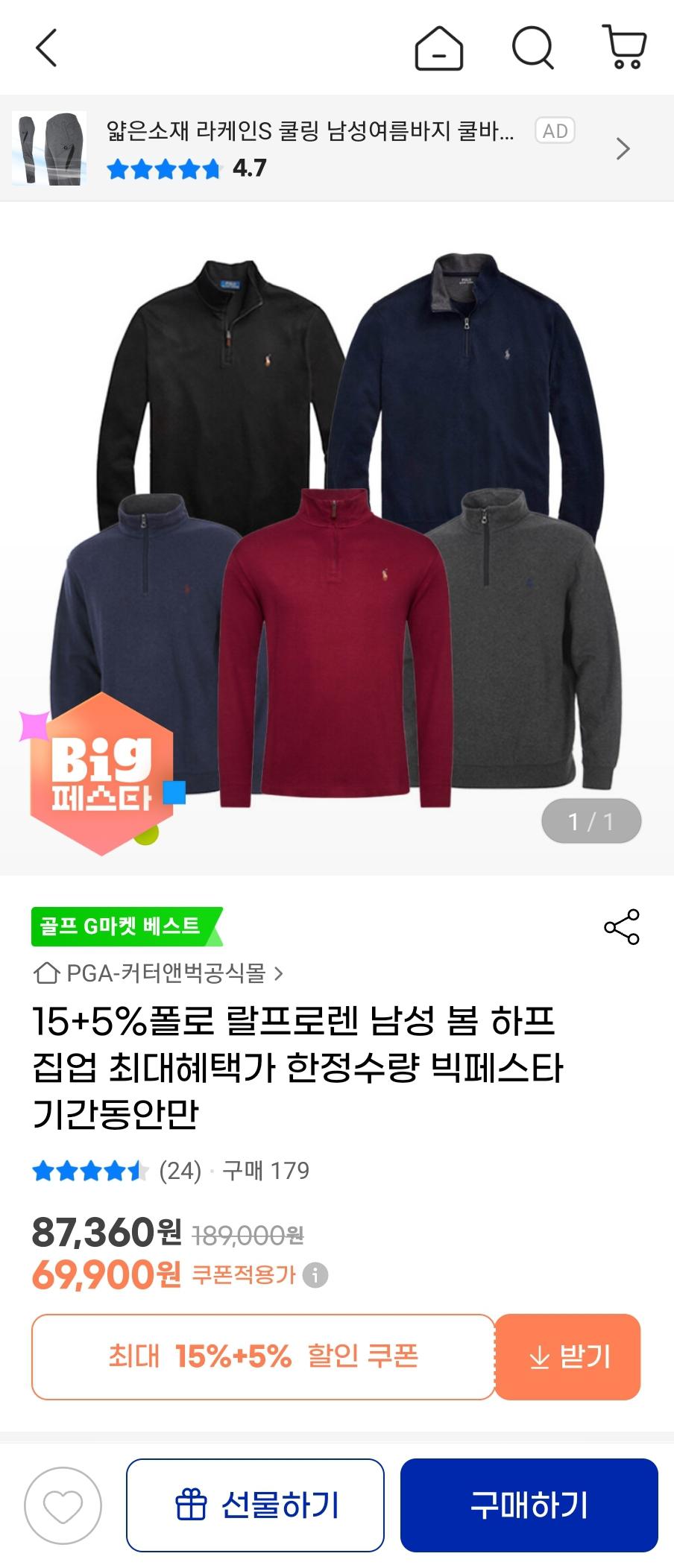 [11번가] 폴로 랄프로렌 반집업 티셔츠 69,900원 무배