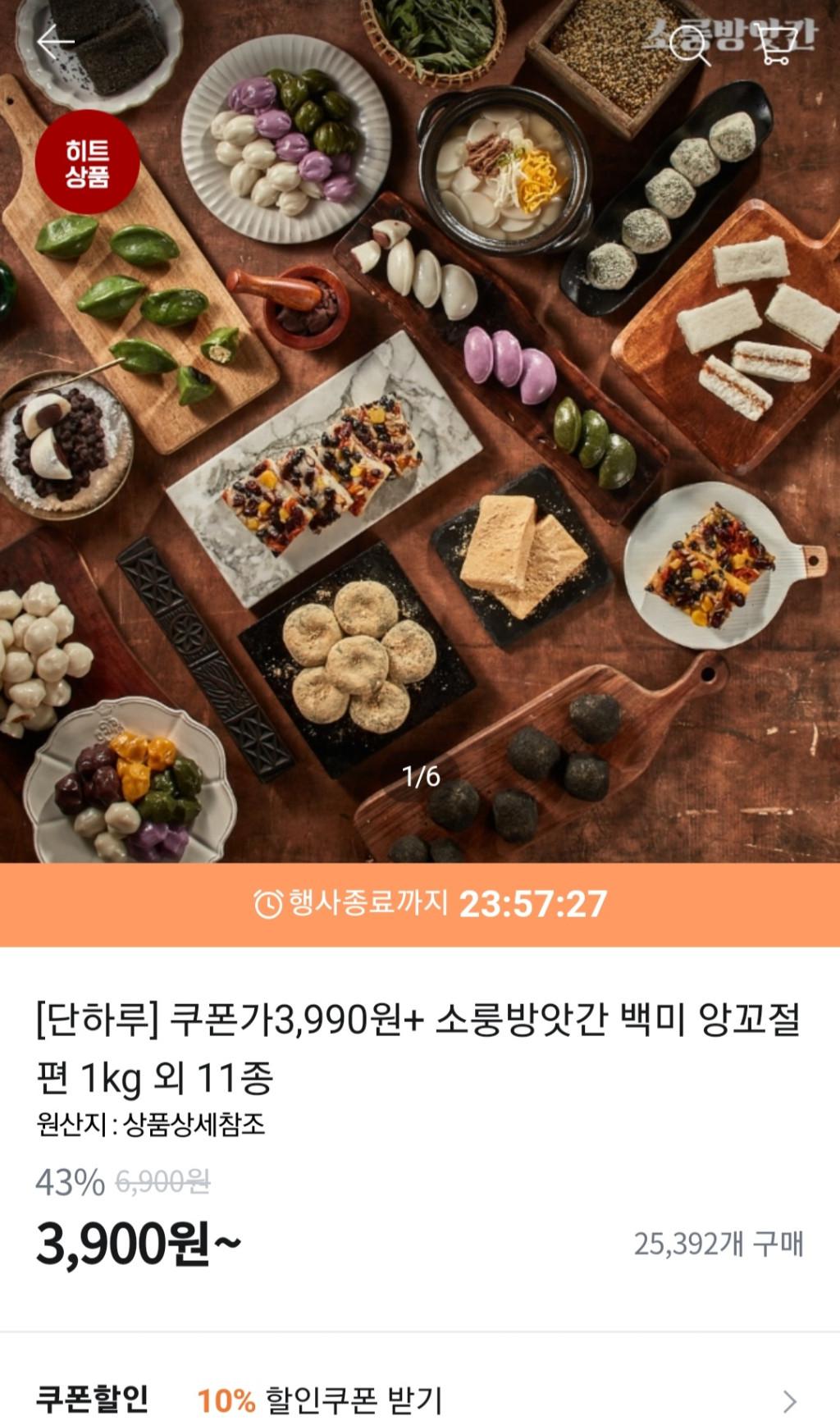 [위메프] 룽방앗간 꿀떡/절편/바람떡/찹쌀떡/카스테라 쑥 인절미 1kg 골라담기