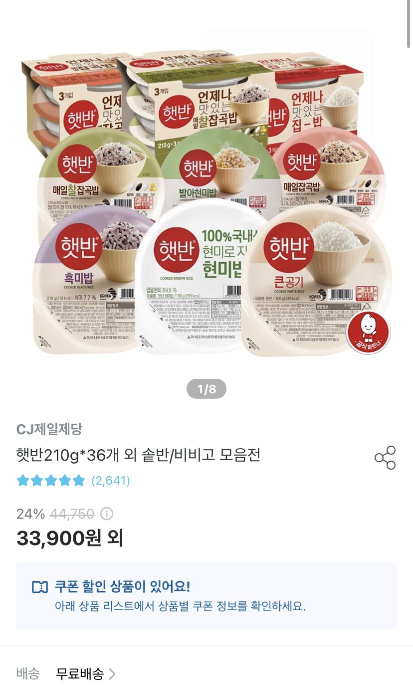 [오늘의집] CJ 햇반 백미밥 210G 36개