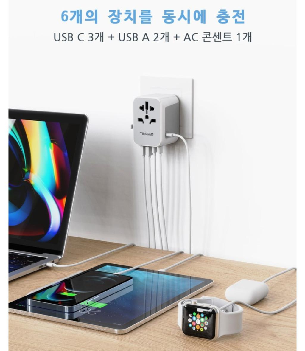[쿠팡] TESSAN 28W 범용 여행용 올인원 충전기 USB포트2개 C타입3개